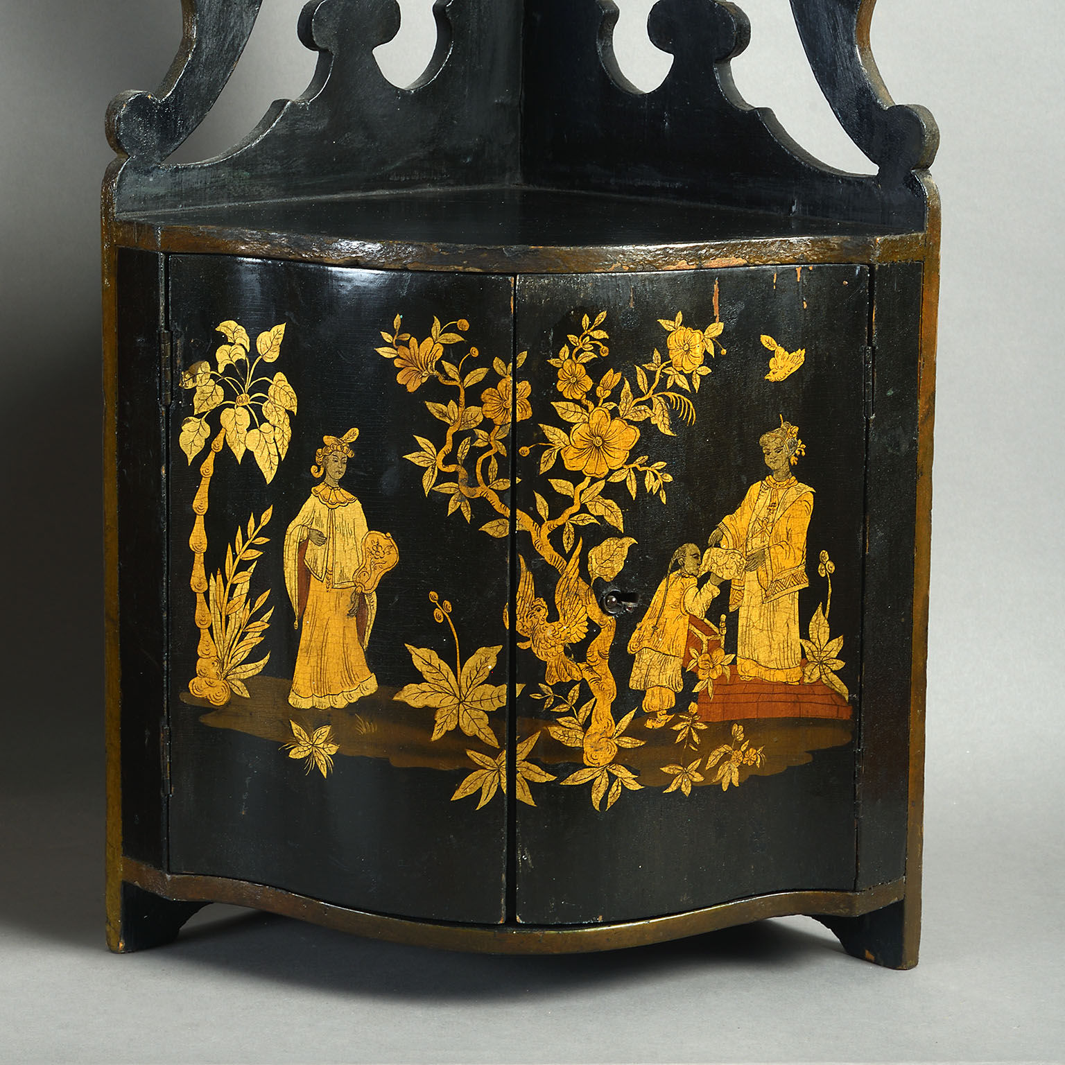 Pair of 18th Century French Japanned Hanging Corner Cupboards