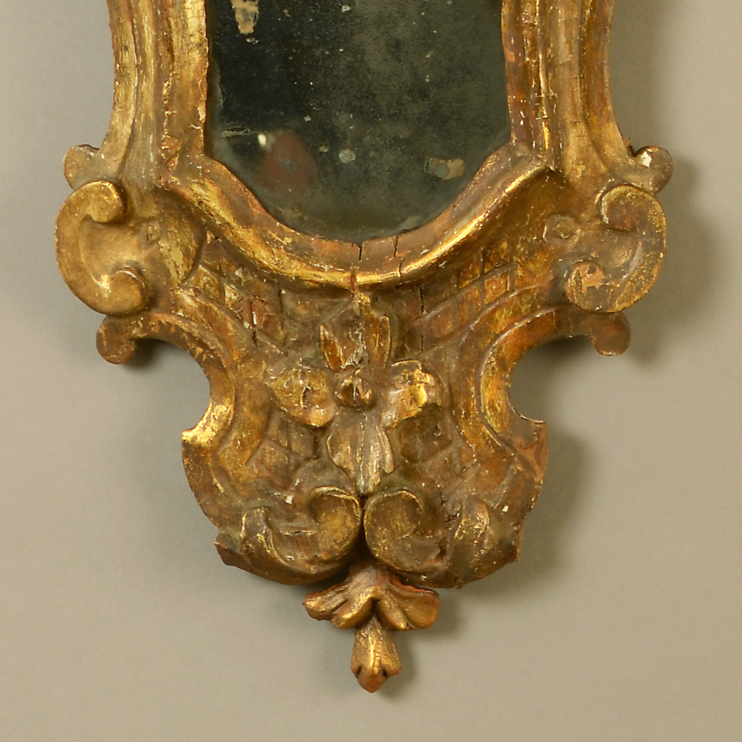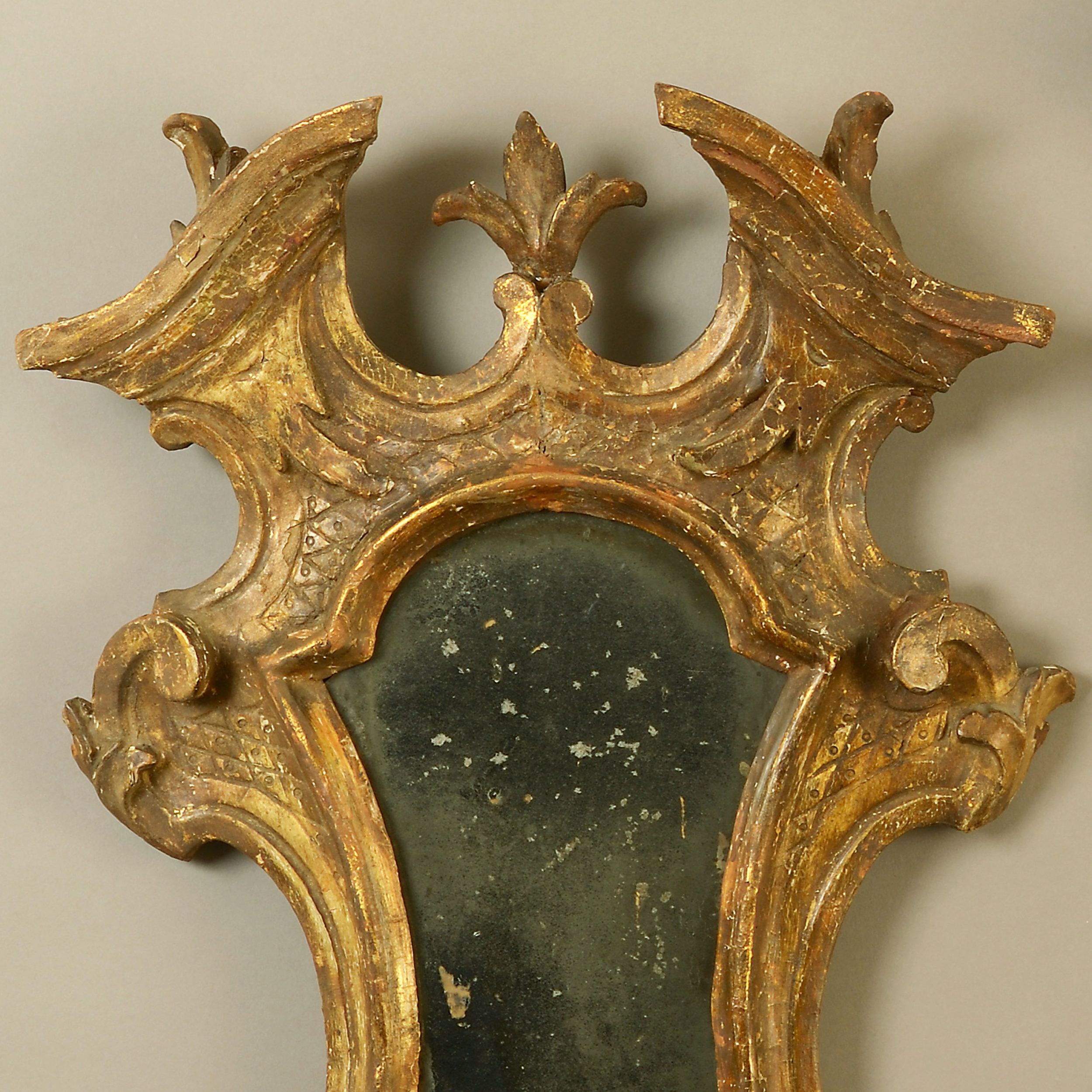 A fine pair of mid-18th century Venetian carved giltwood girandole mirrors in the rococo taste. Retaining the original mercury plates.