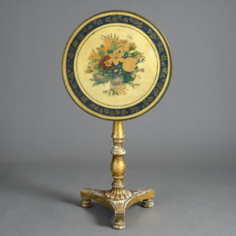 Early 19th Century George-IV Giltwood & Painted Tilt-Top Floral Table
