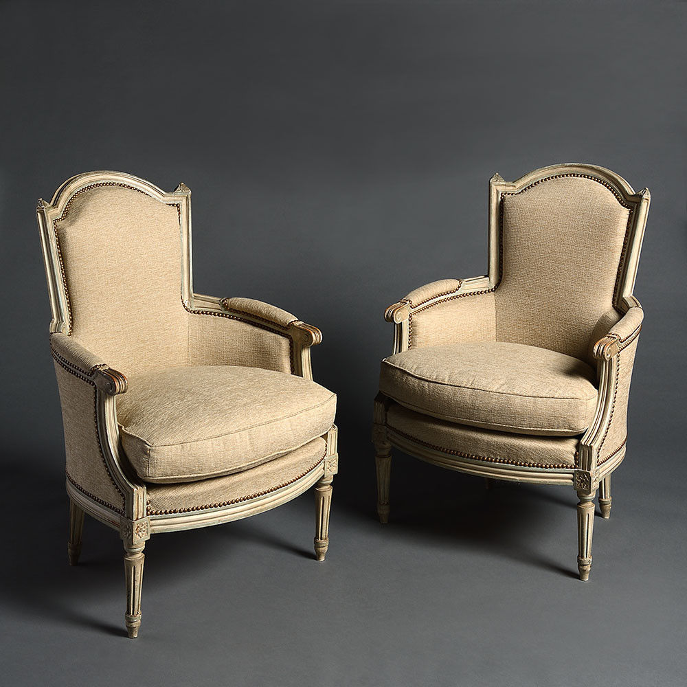 A Pair of Late 19th Century Louis XVI Style Painted Bergeres