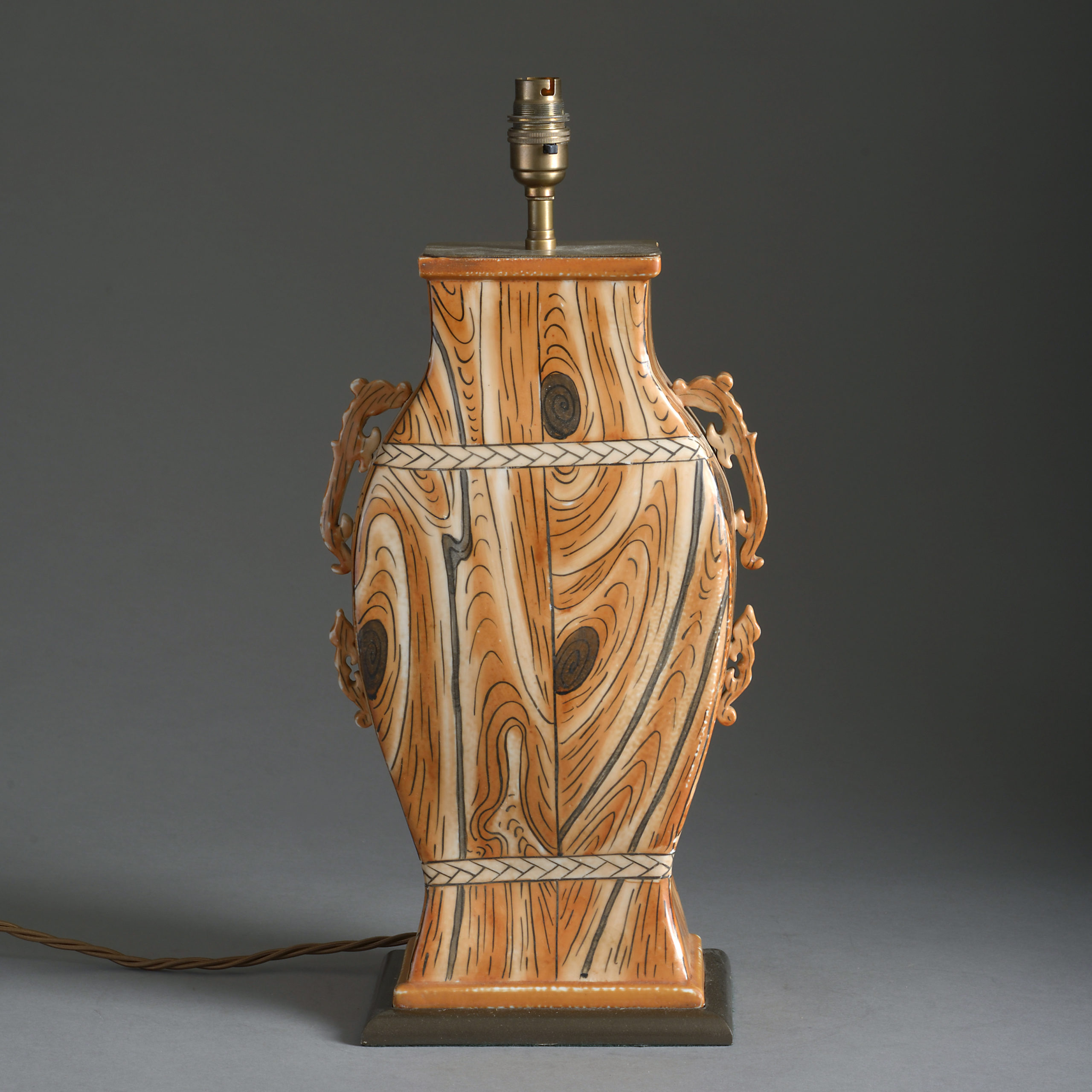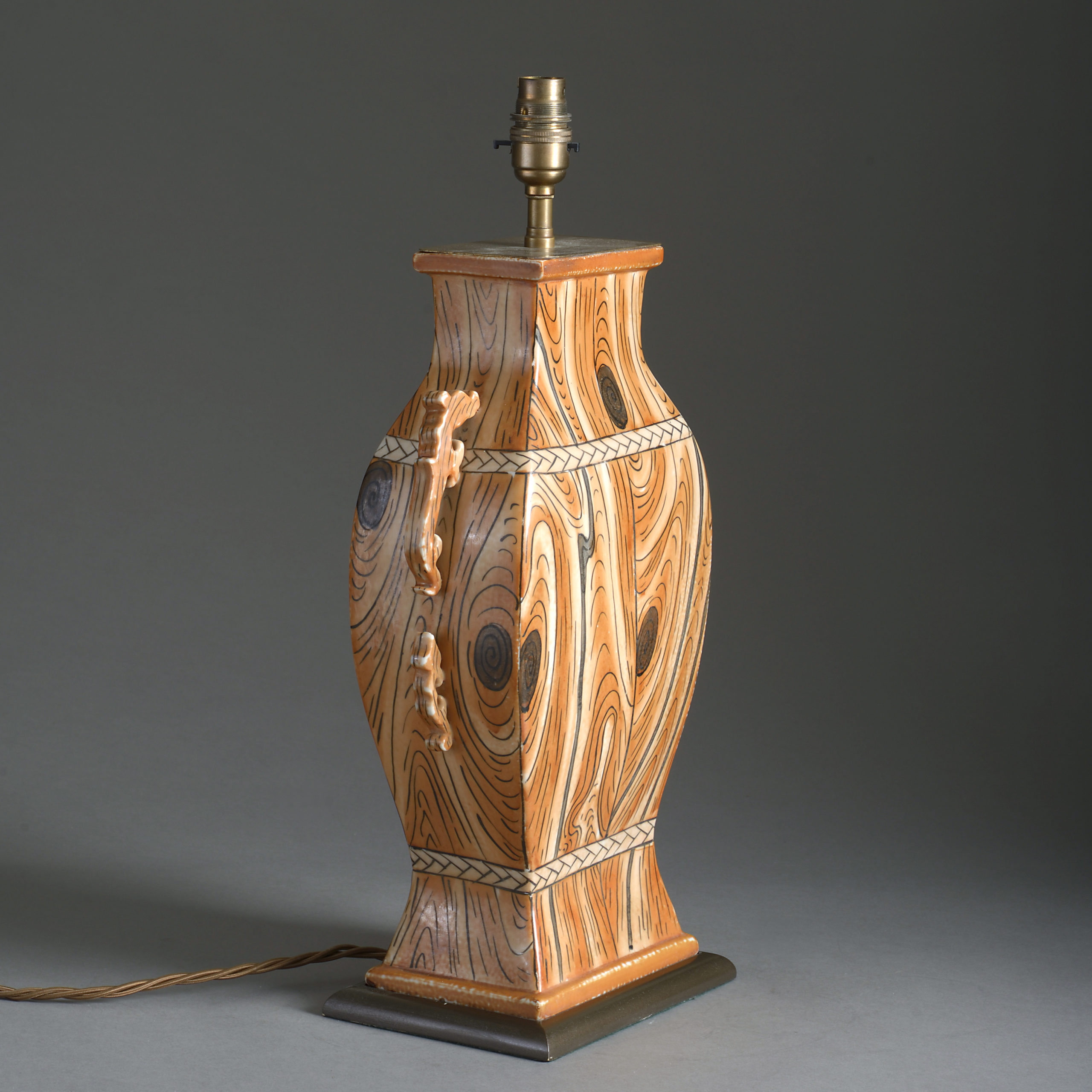 A Faux Bois Chinese Export Pottery Vase Lamp