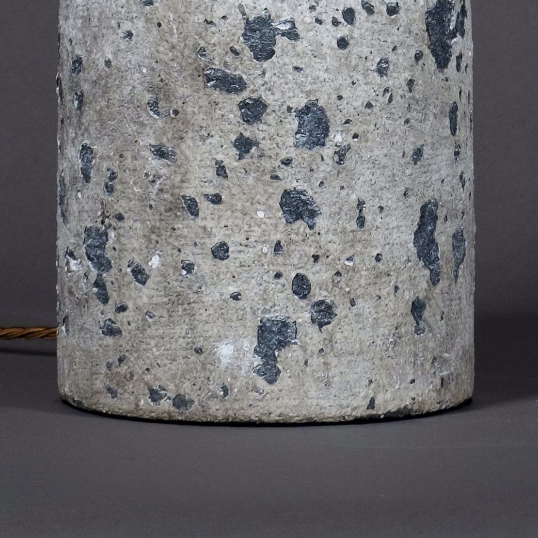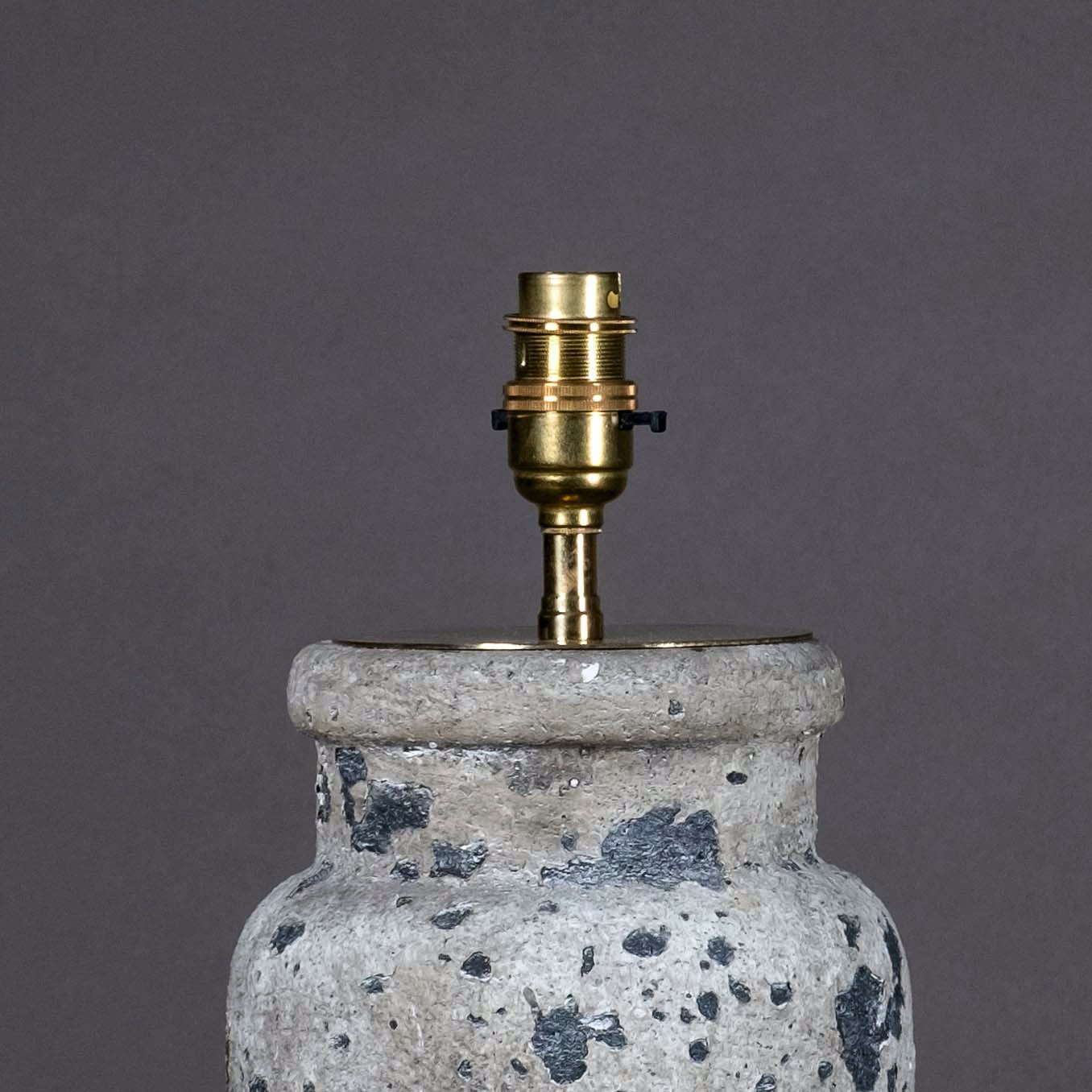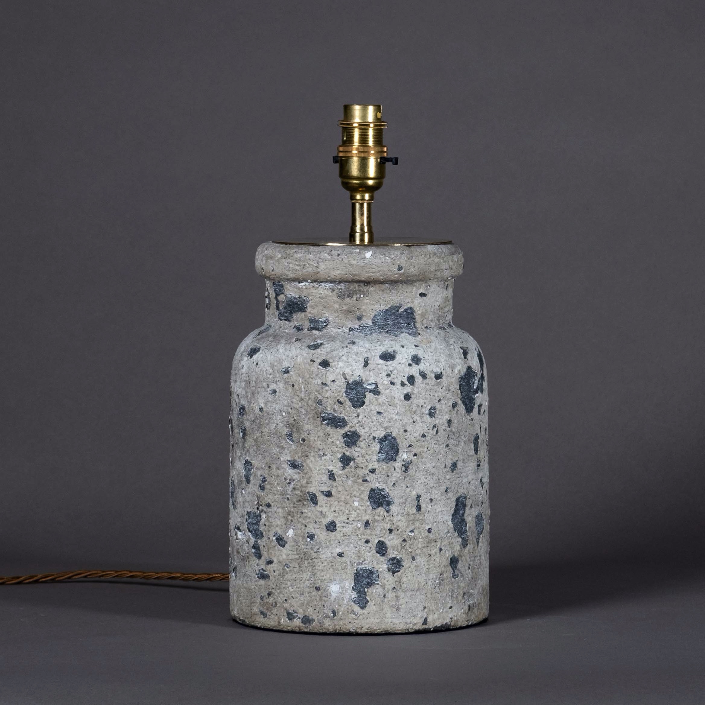 A charming early twentieth century ceramic jar, the surface imitating stone. Now mounted as a lamp base.