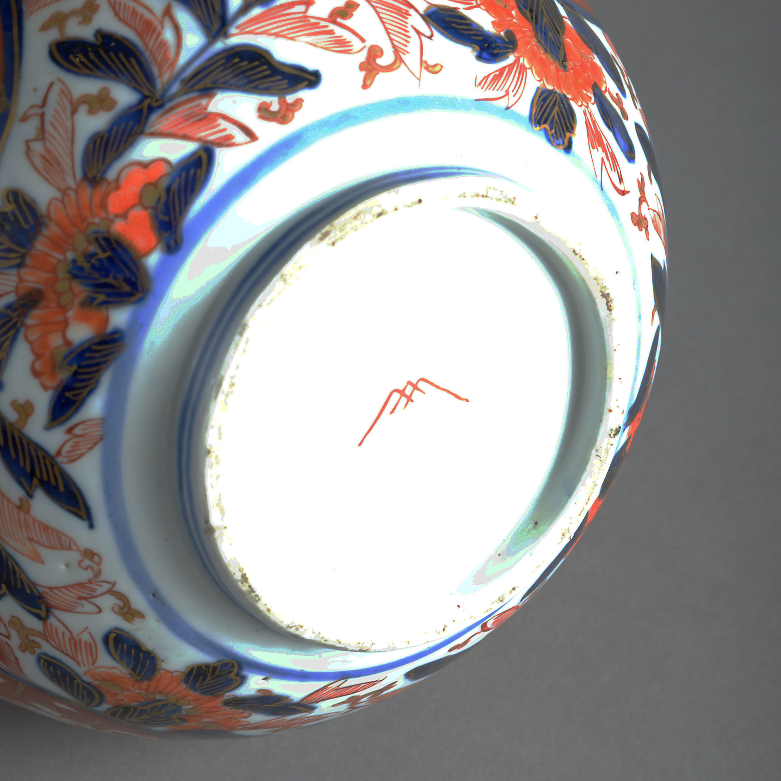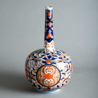 A fine late 19th century Imari porcelain bottle vase, decorated in the traditional manner with glazes in blue, red and gold upon a white ground.
