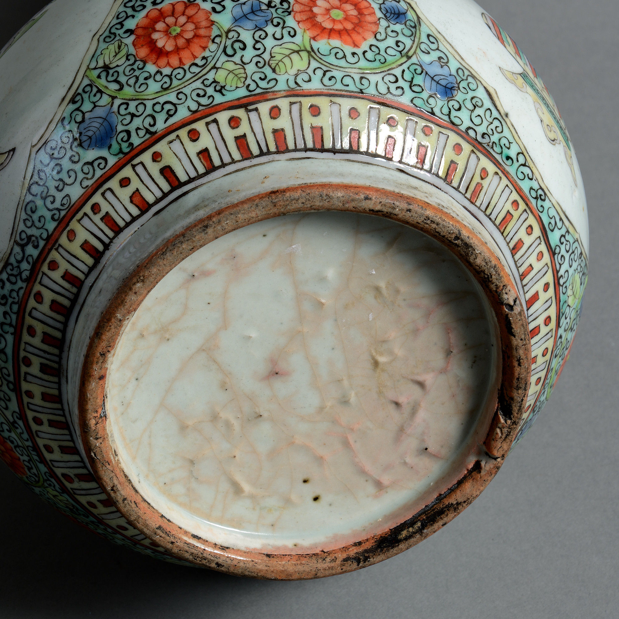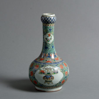 Part of the ‘green family’, this vase and cover bears an overglaze enamel which was applied after the initial firing and glazing process; a technique dating back to the the Ming Dynasty.