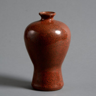 A late 19th century vase of baluster form and decorated with an iron rust or red tea dust glaze.