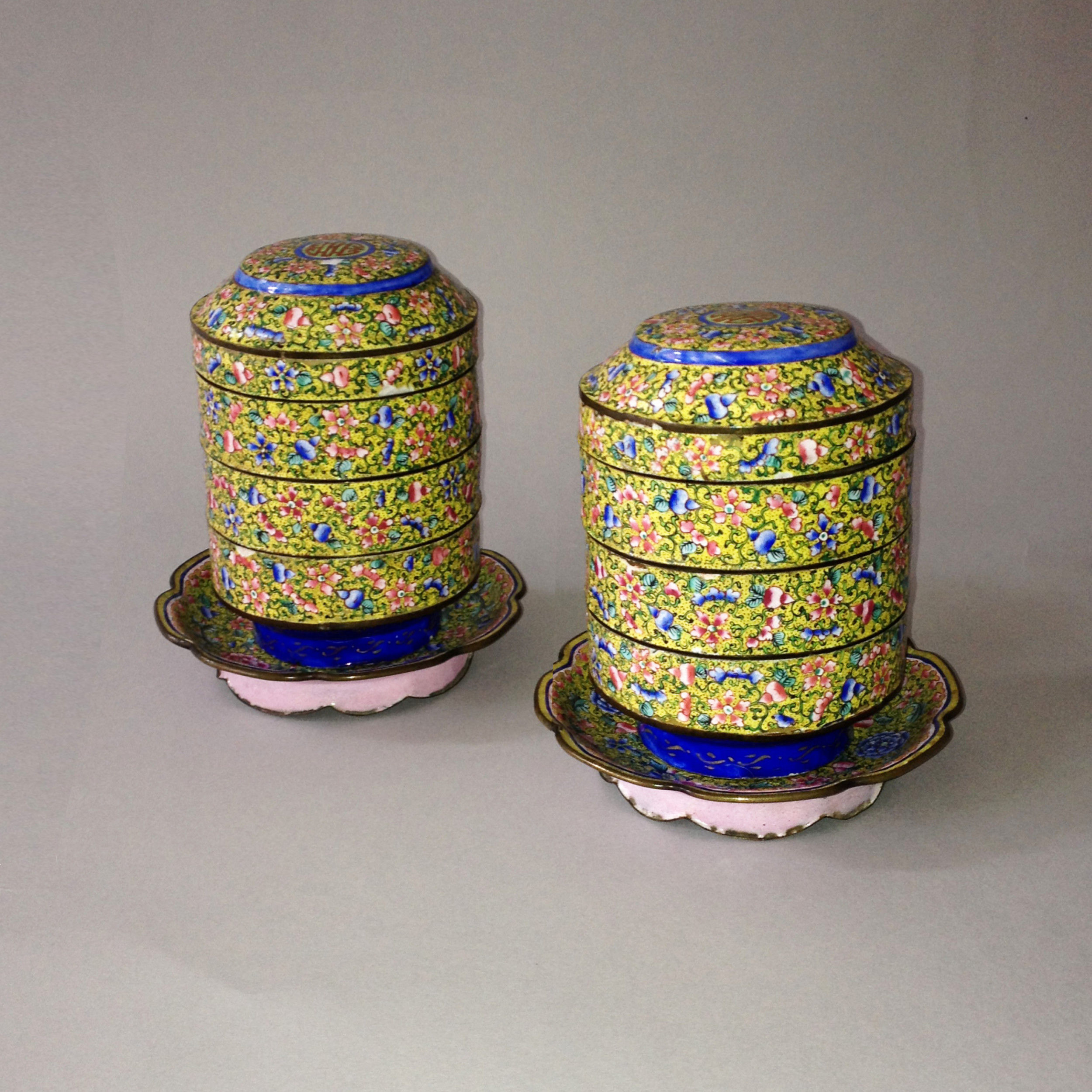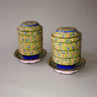 A Pair of Canton Enamel Picnic Boxes