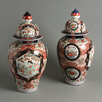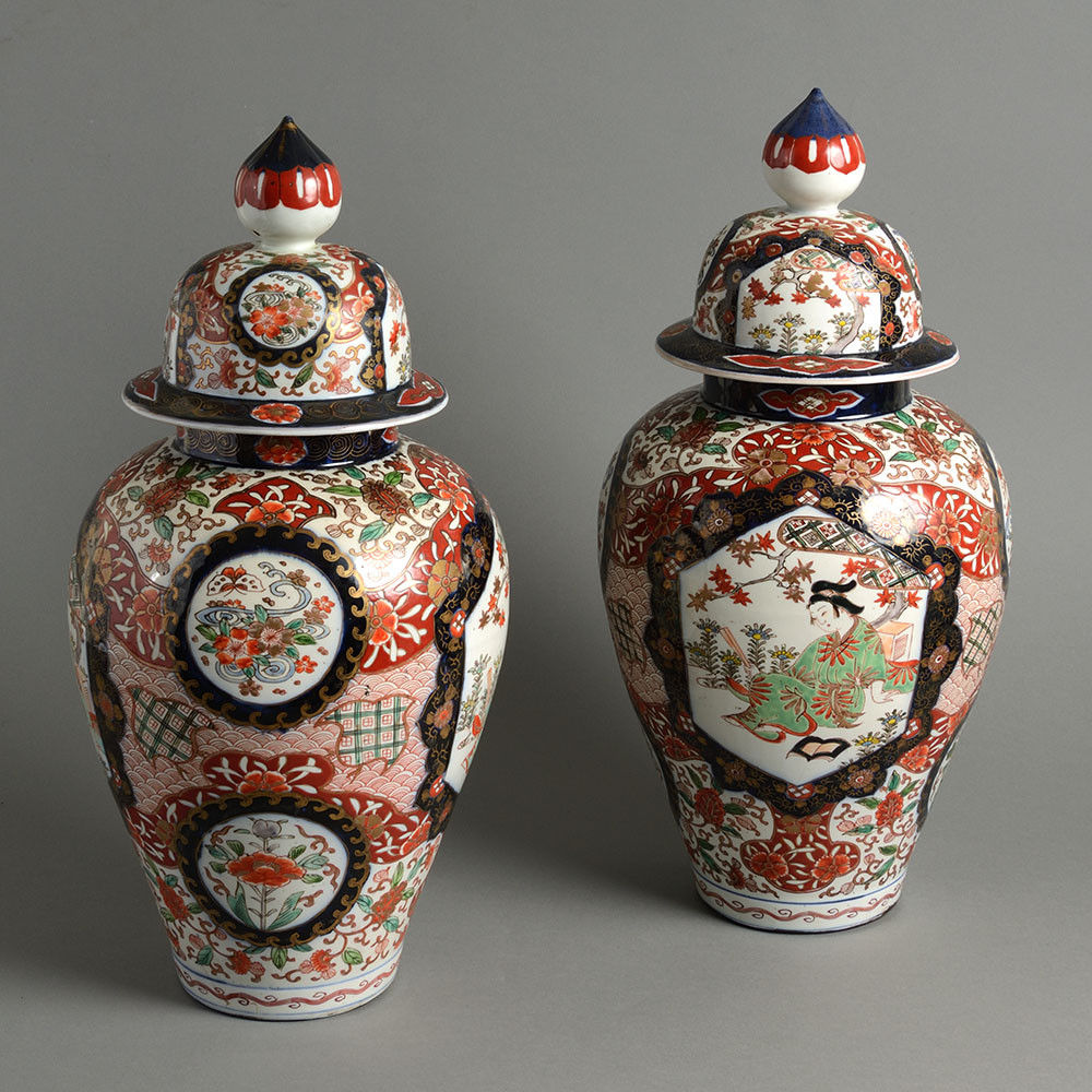 A fine late nineteenth century pair of Imari vases, of good scale and retaining their original covers