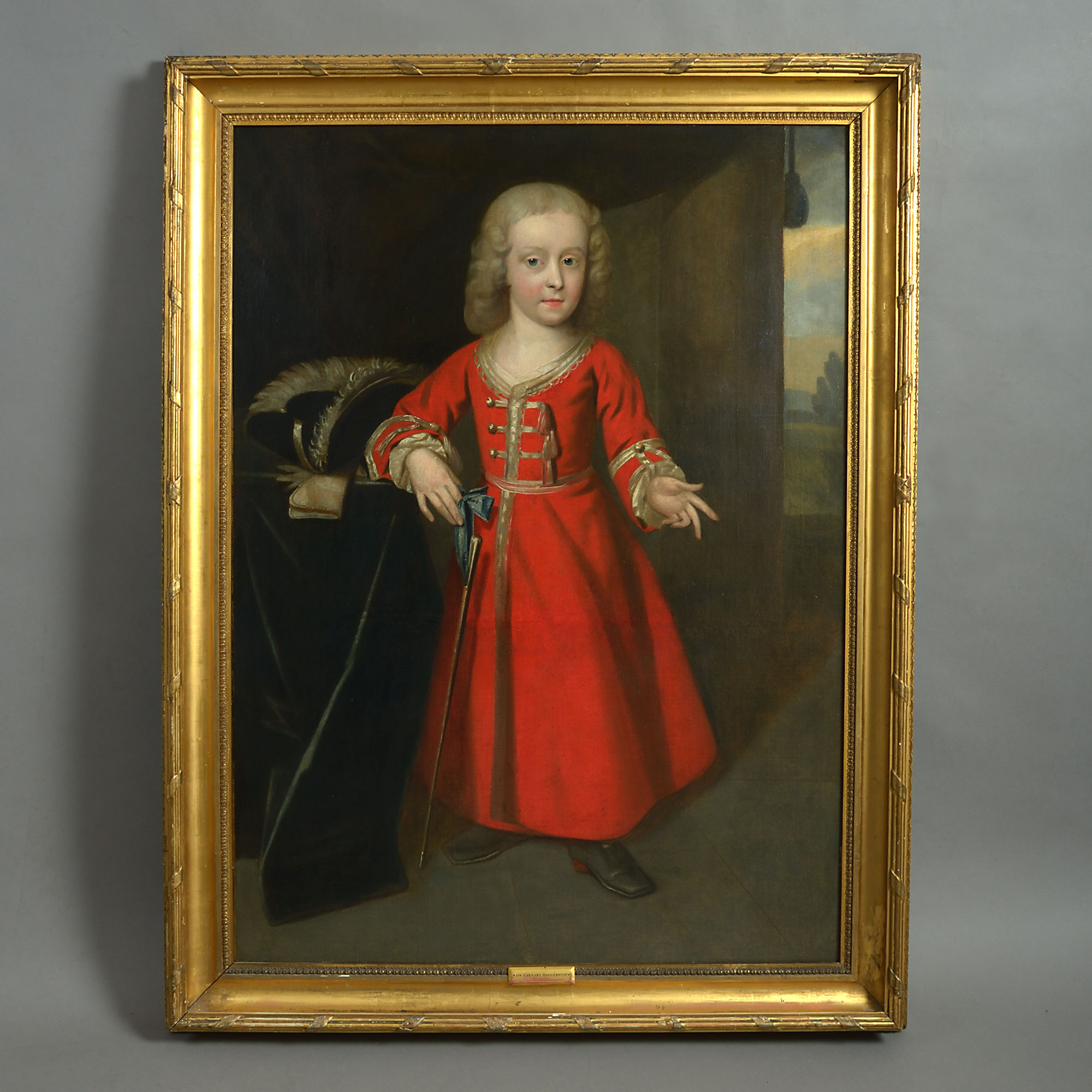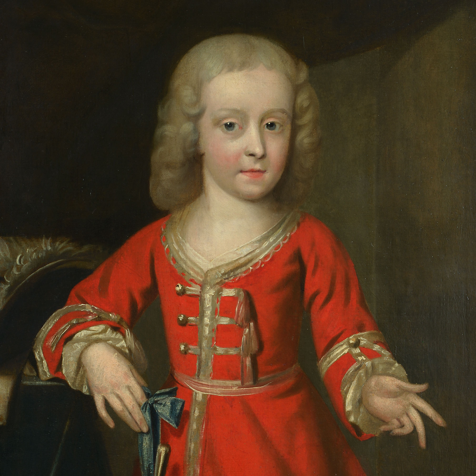 Carnaby was the son of William Haggerston of Haggerston Castle Northumberland and Anne Constable only daughter of Sir Philip Constable of Everingham Yorkshire. He married Elizabeth Middleton of Stockeld, Yorkshire in November 1721. In the portrait presented here he is depicted in a child’s riding habit of the early 18th century complete with plumed tricorn hat, gauntlet gloves and riding crop. His tomb in St Maurice’s Church, Ellingham, Northumberland cites: “A gentleman of uncommon erudition, clear and penetrating wit, and solid judgment. Of an extensive and well guided charity to the distressed, universal benevolence to all men and adorned with every Christian and social virtue. He died July 17th 1756…Aged 59”