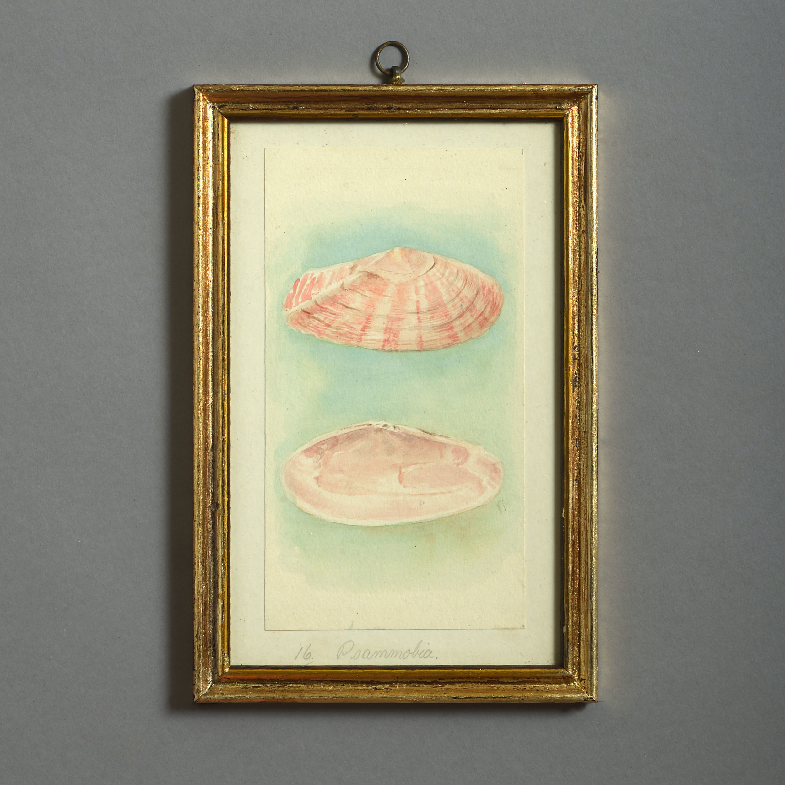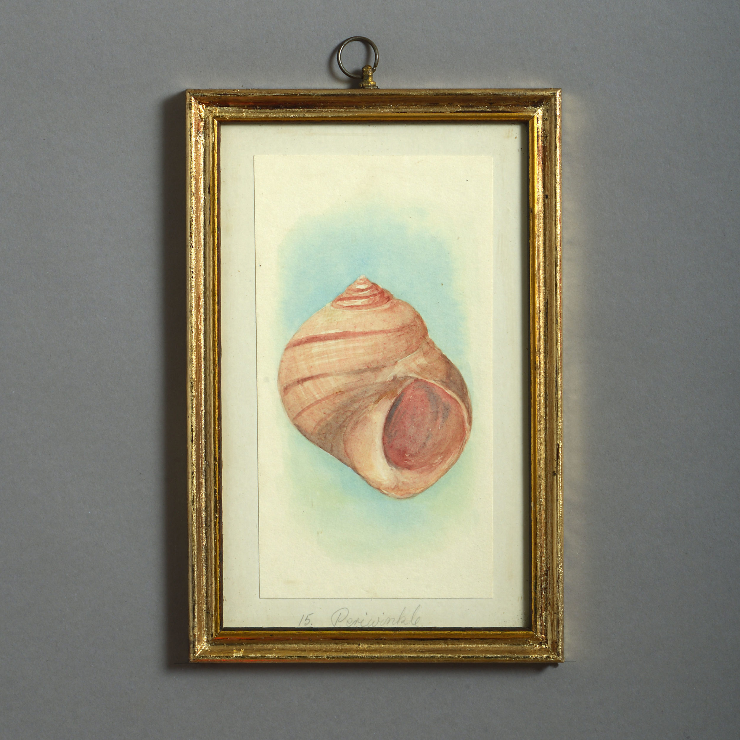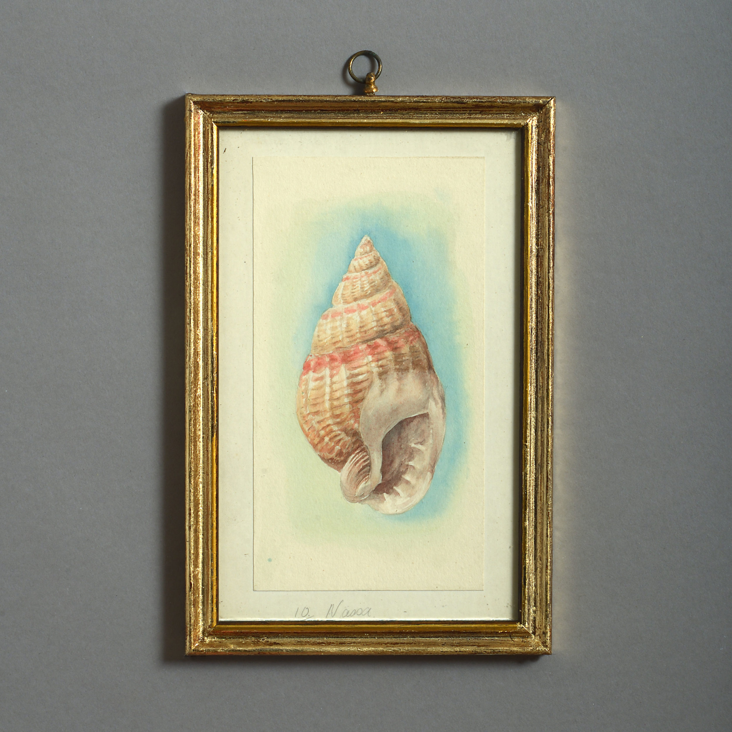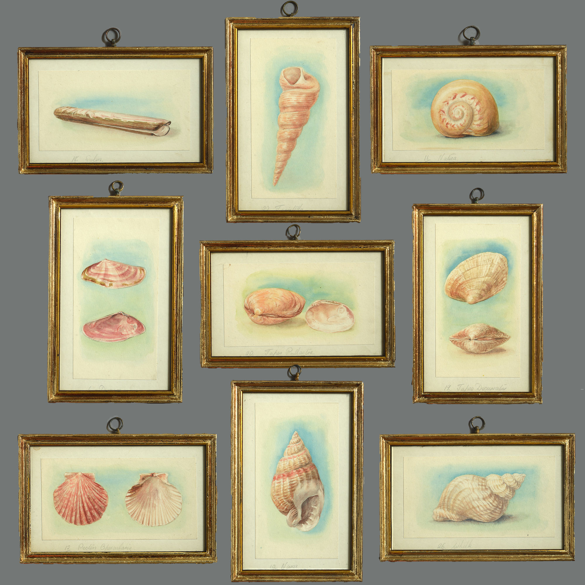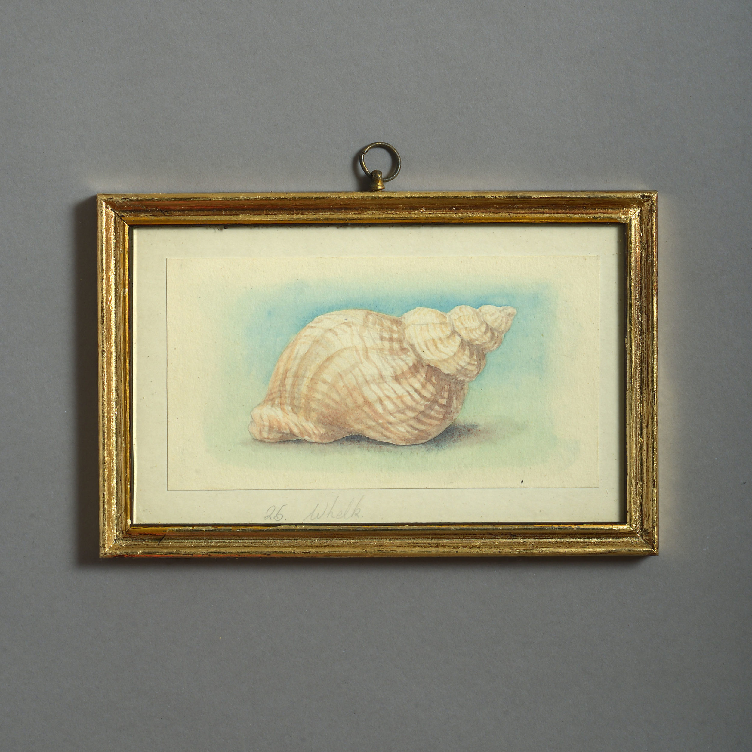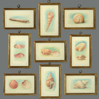 Twenty-four watercolours of British sea shells, laid on paper with pencil descriptions and set within giltwood frames.
