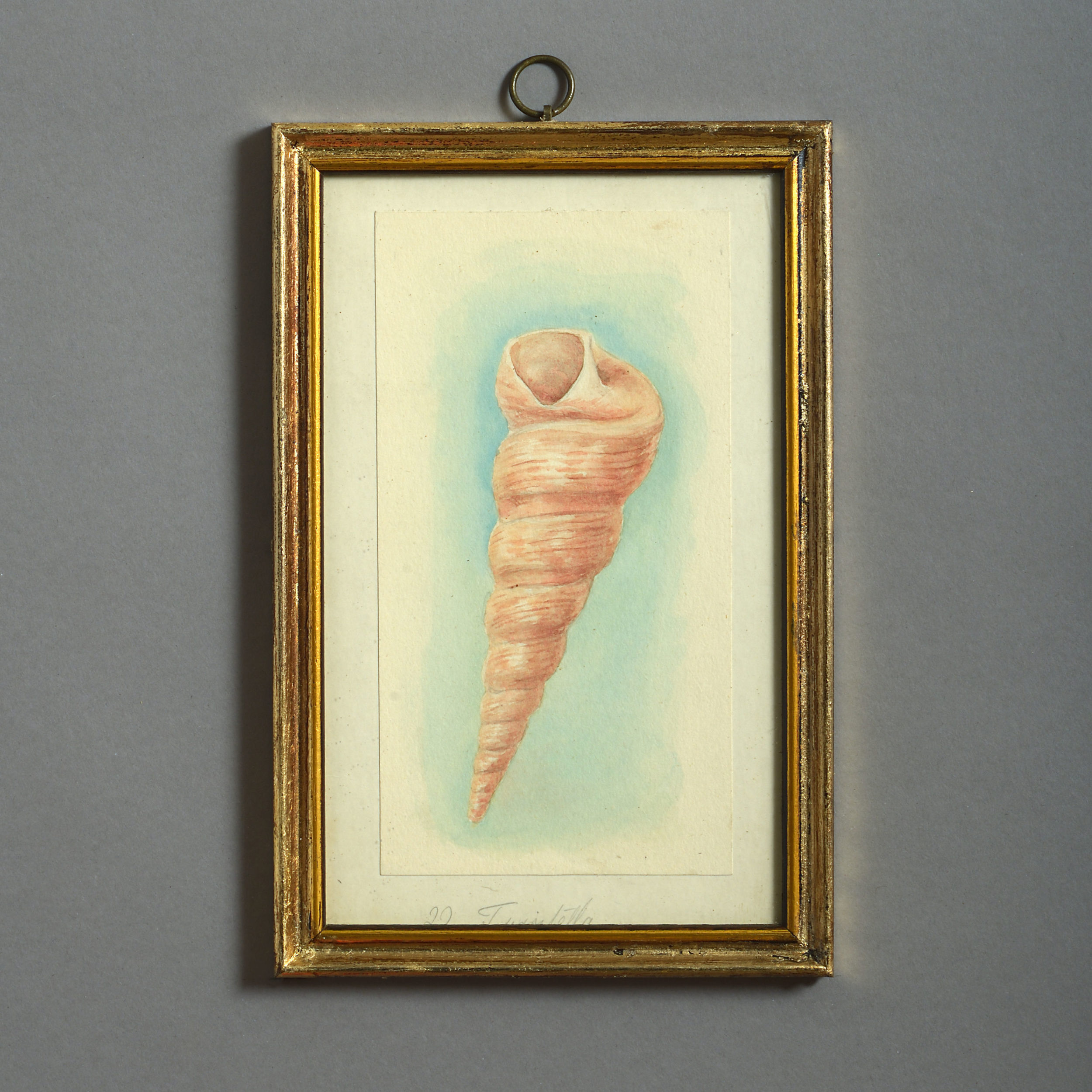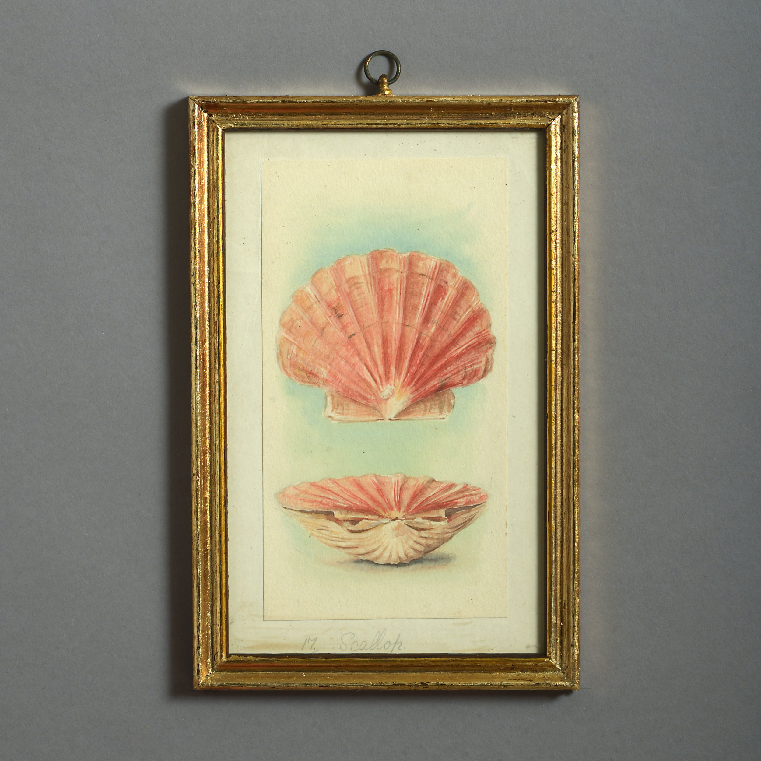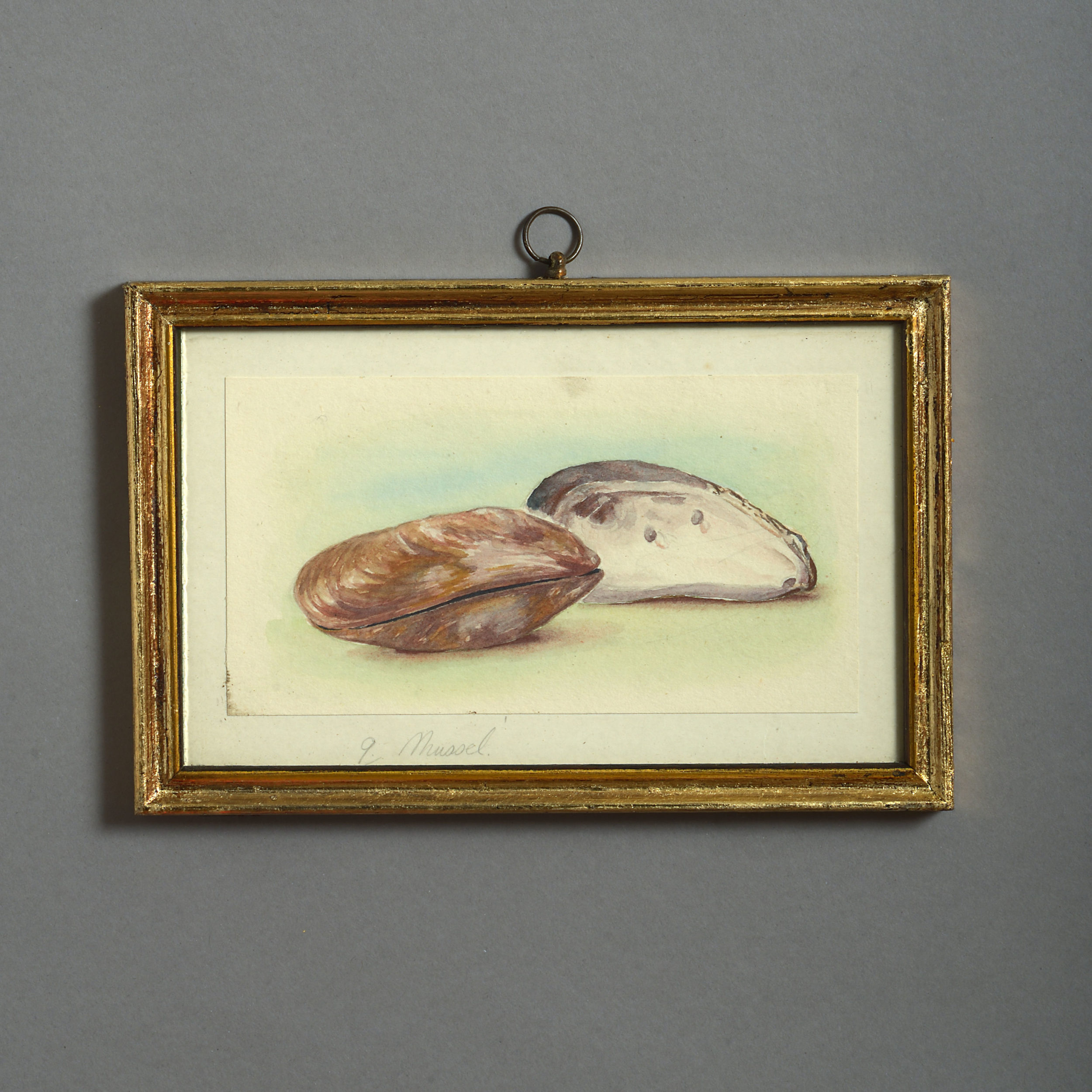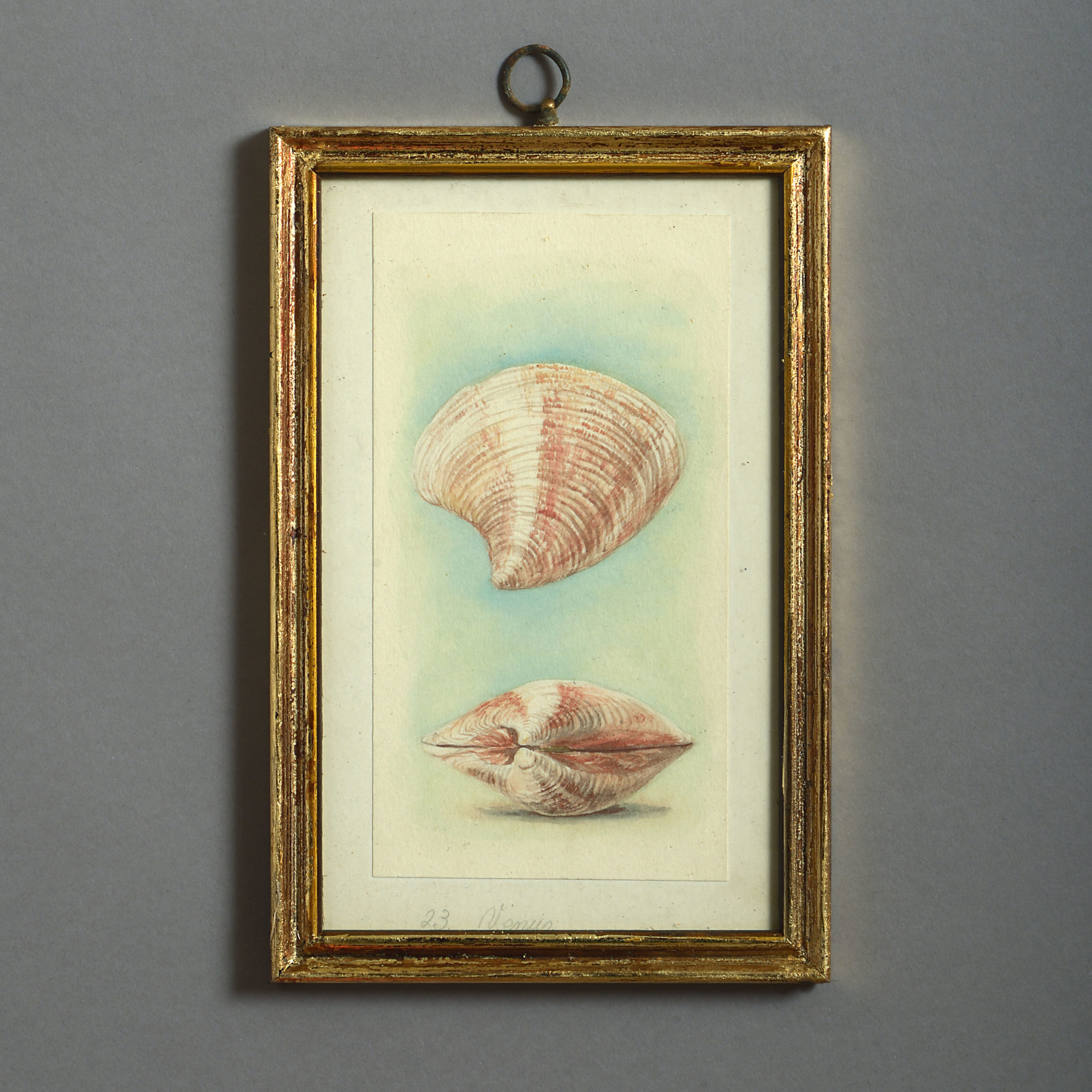 Twenty-four watercolours of British sea shells, laid on paper with pencil descriptions and set within giltwood frames.