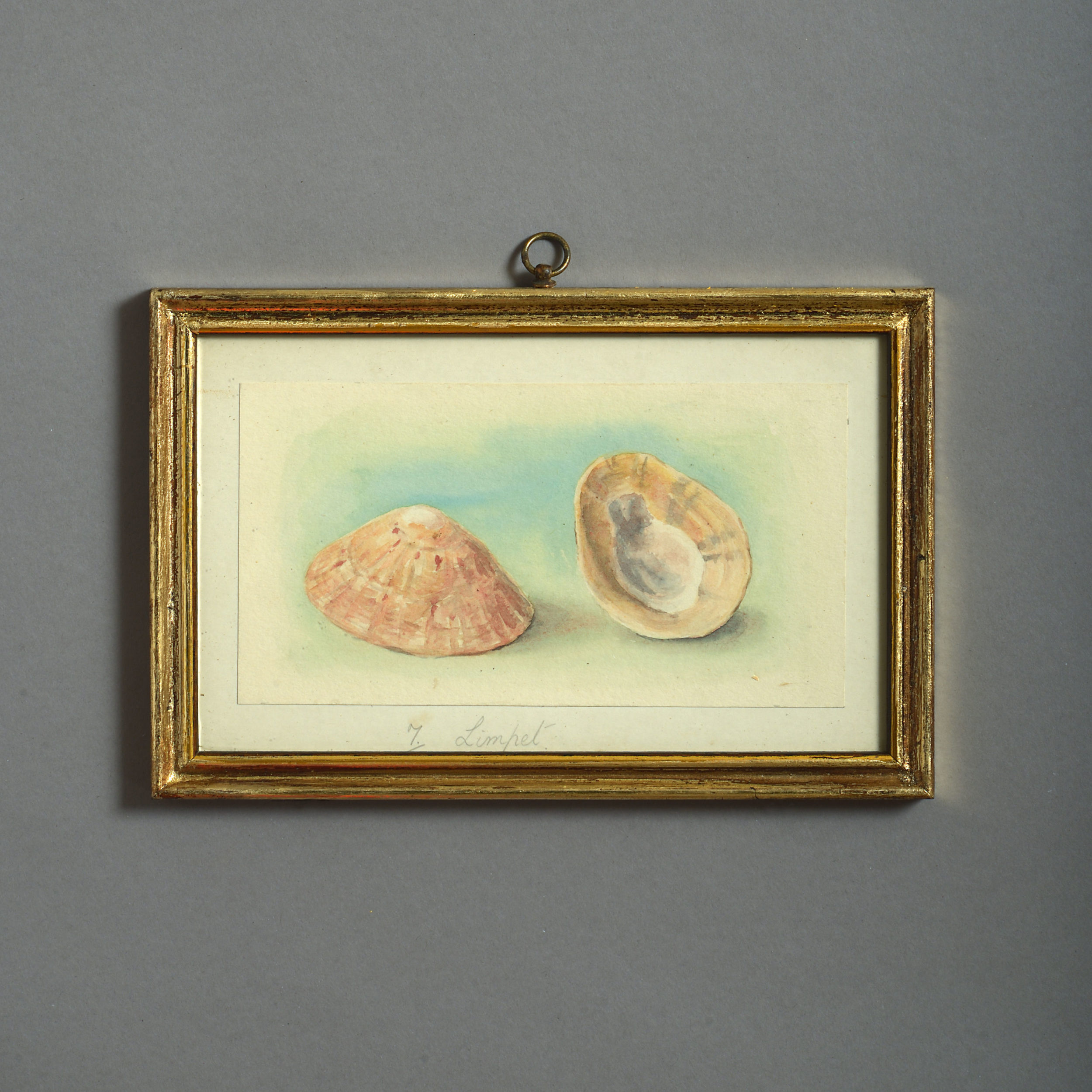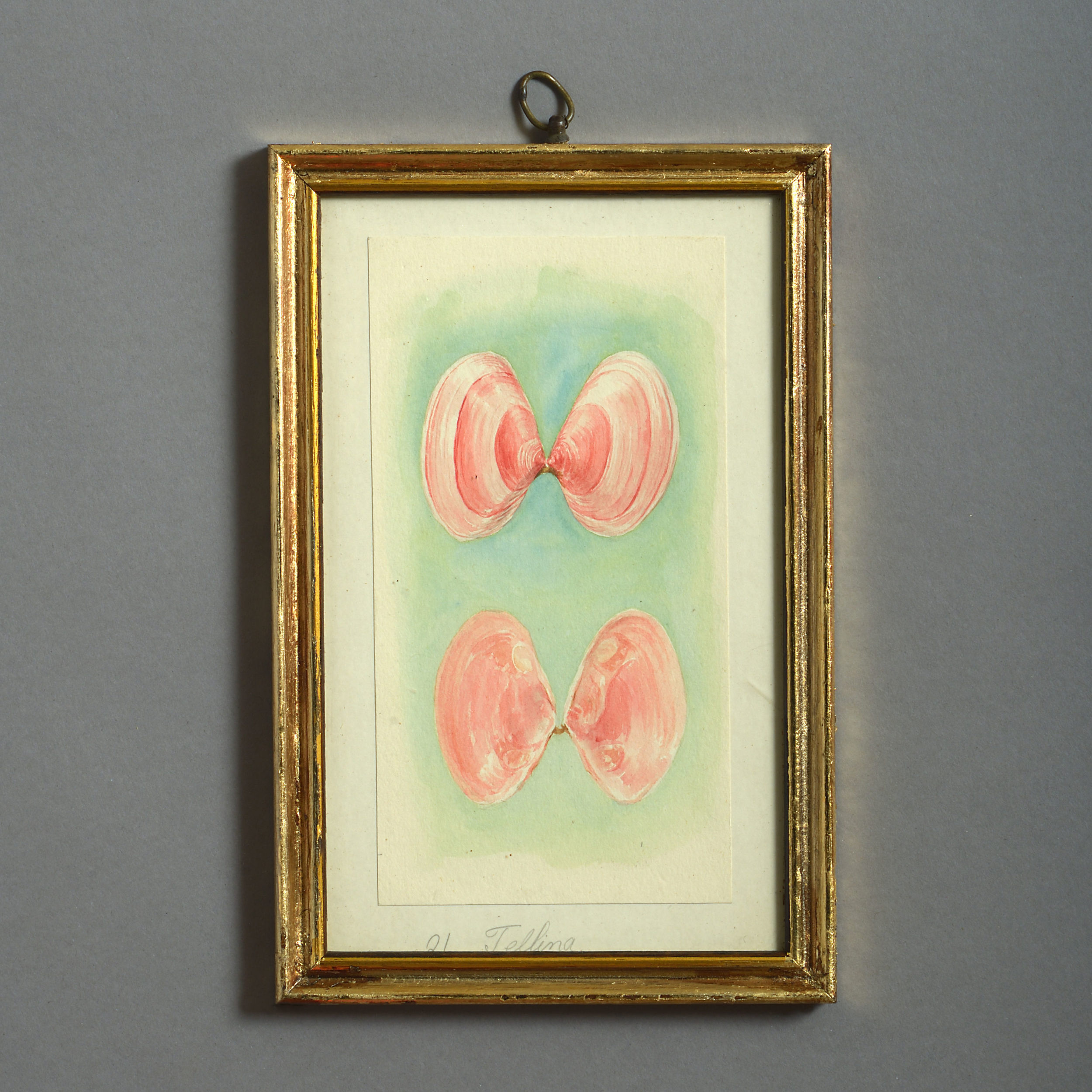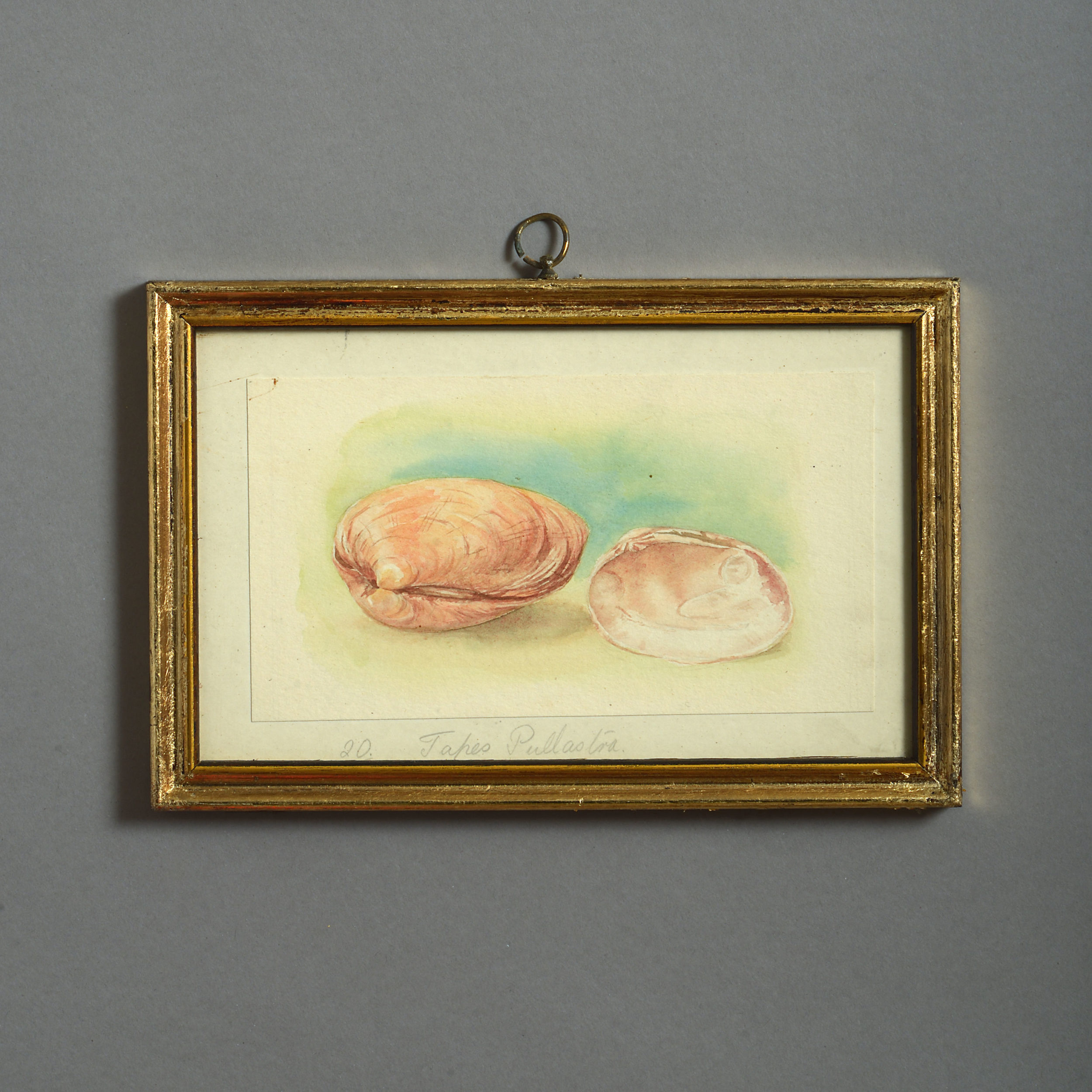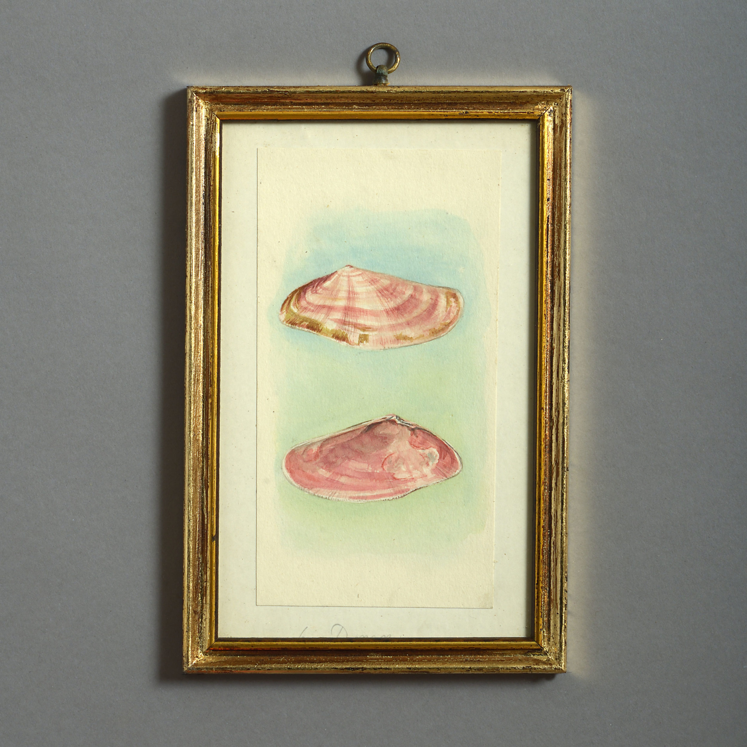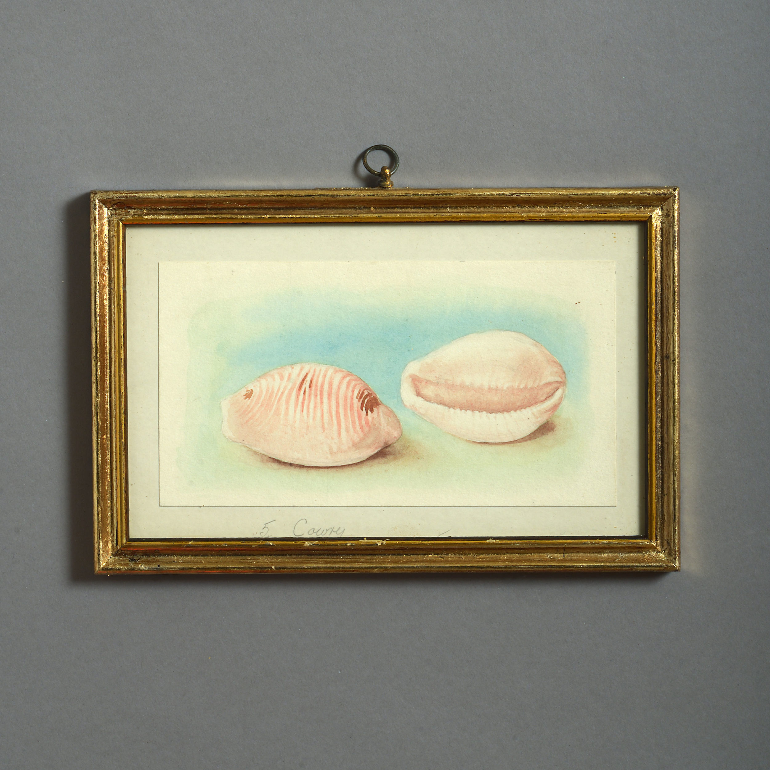 Twenty-four watercolours of British sea shells, laid on paper with pencil descriptions and set within giltwood frames.