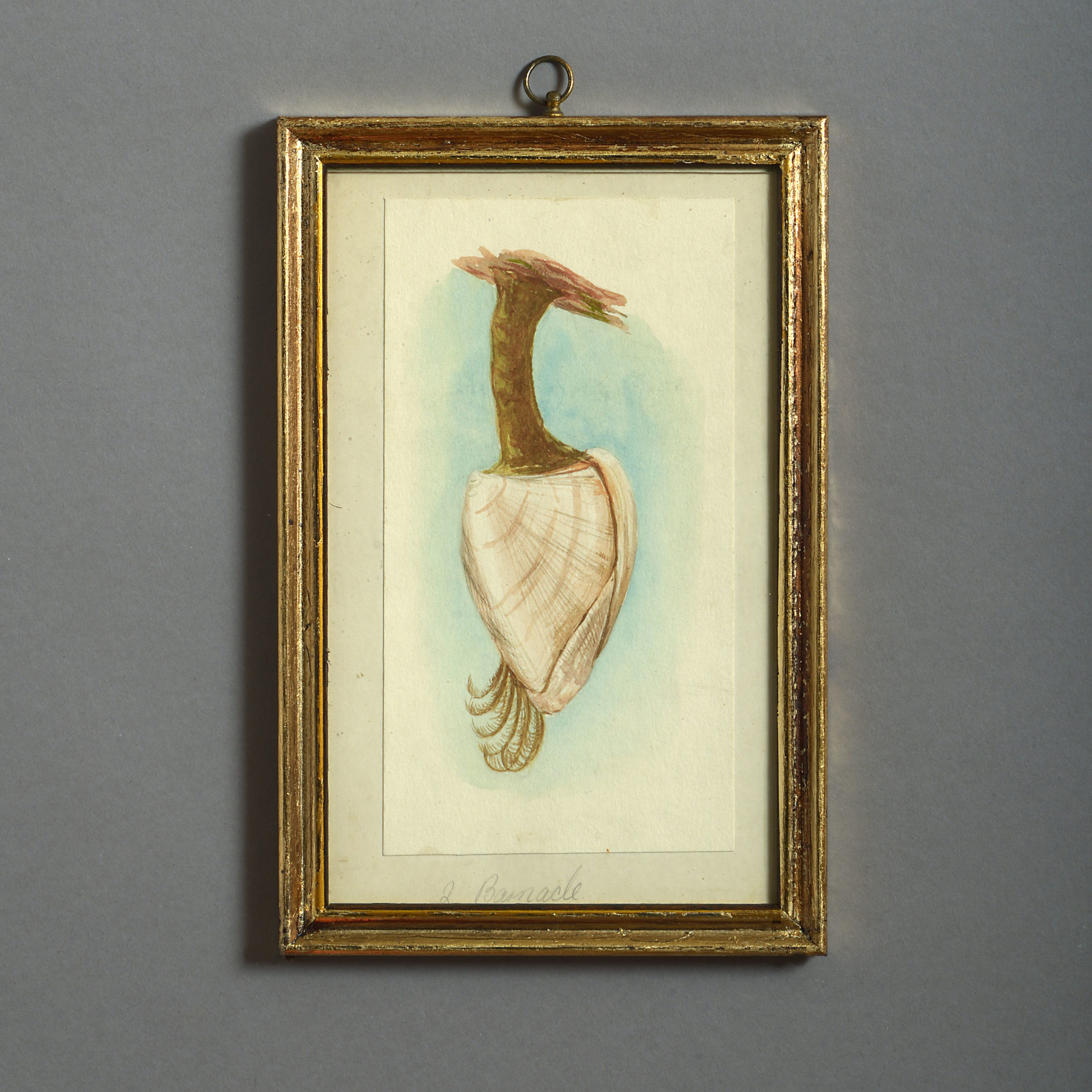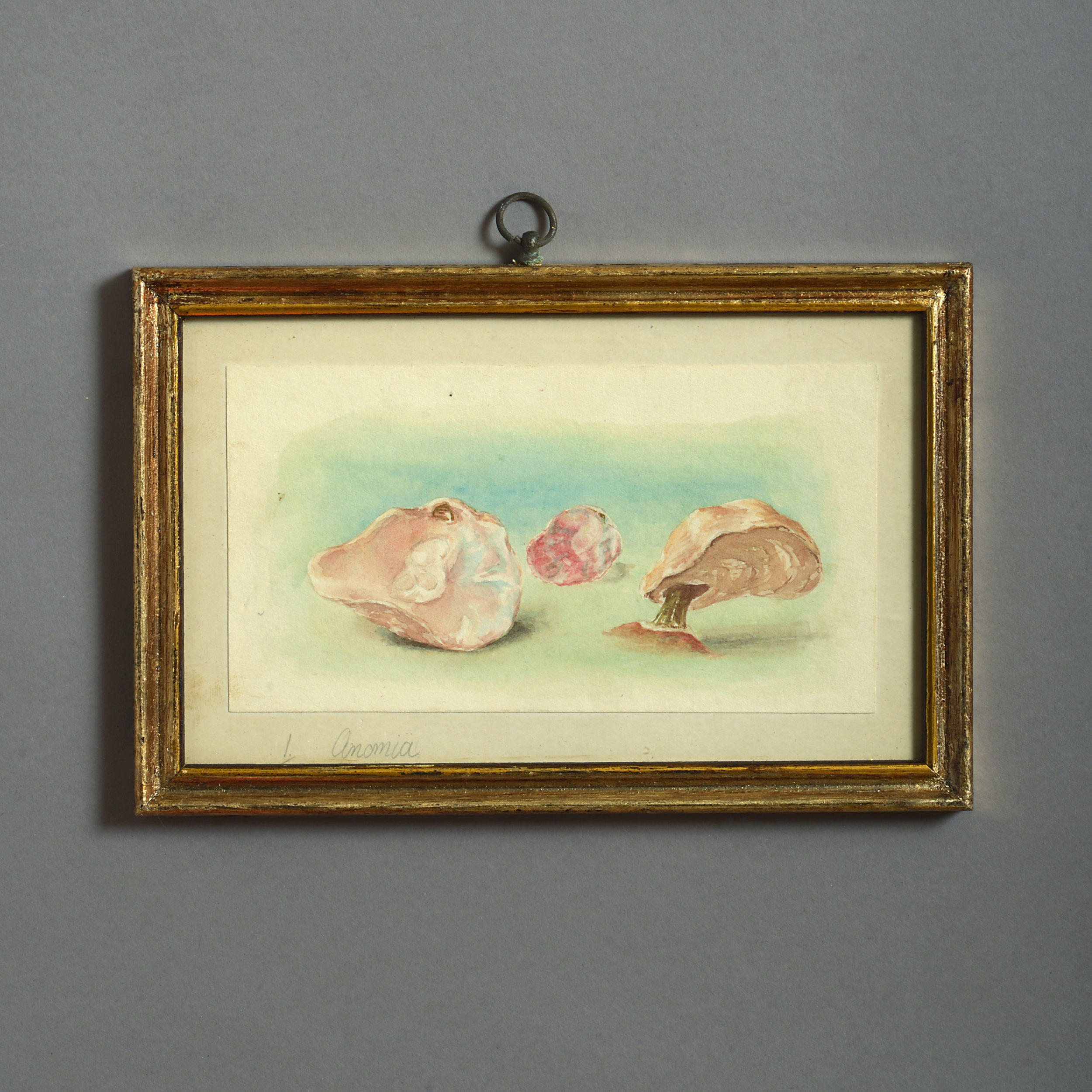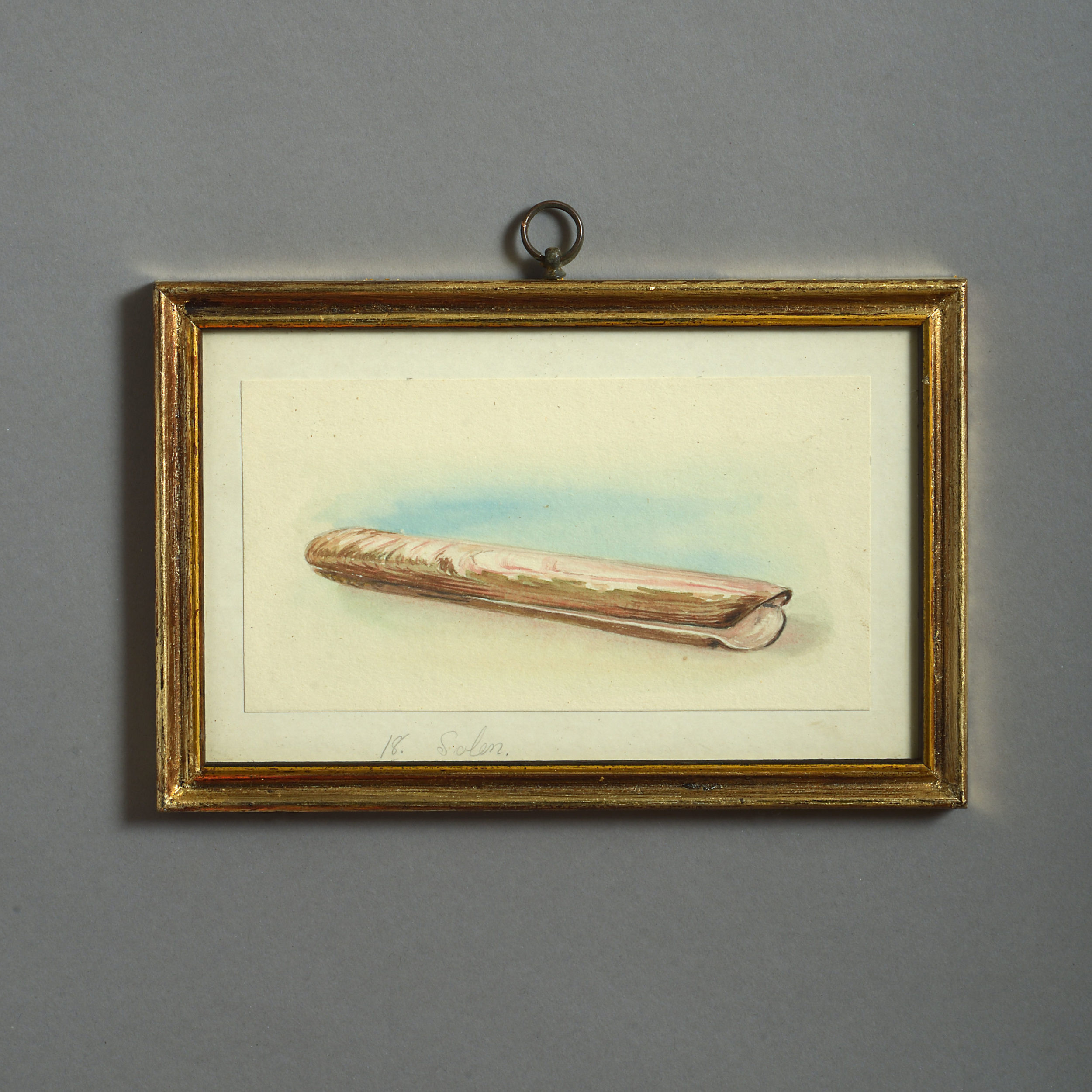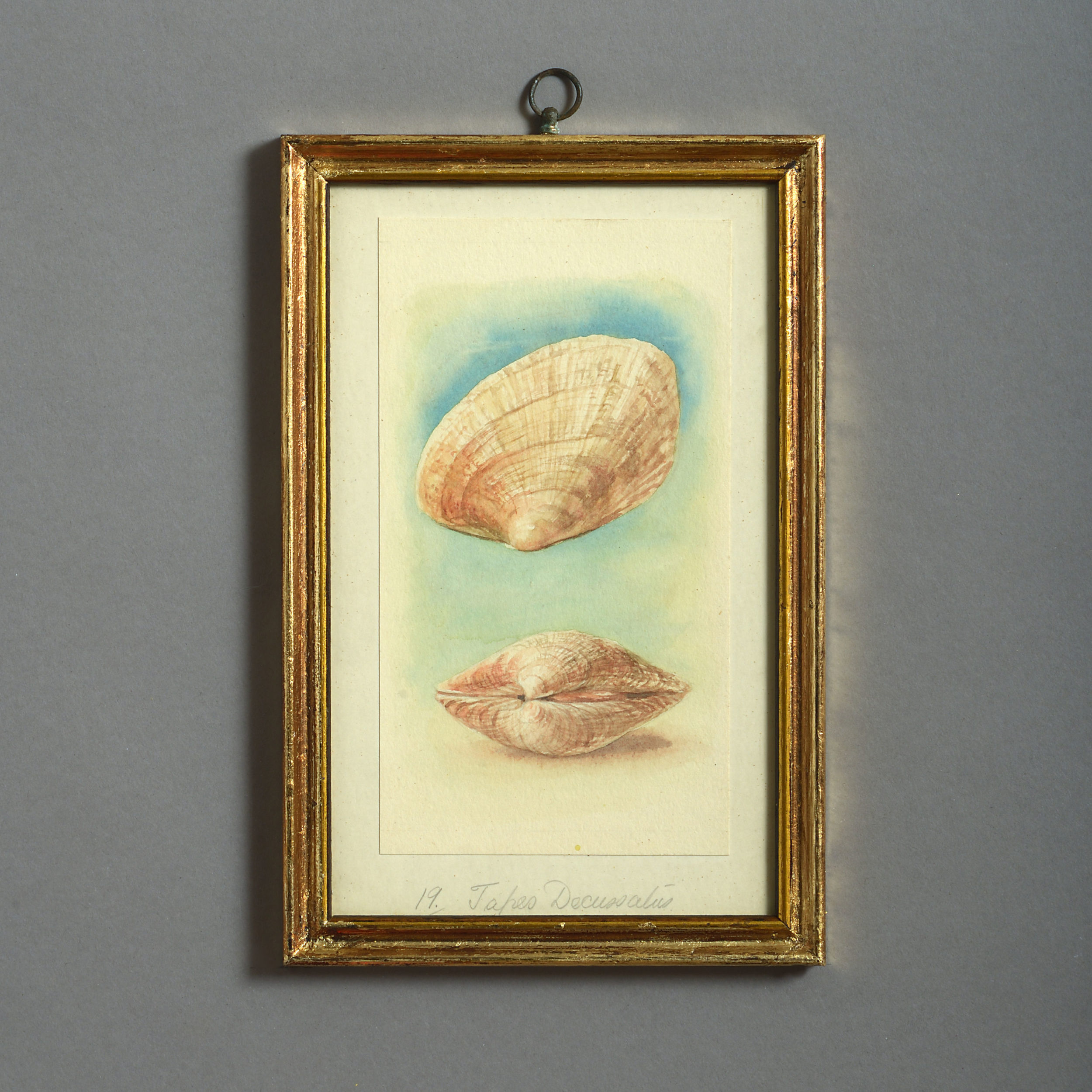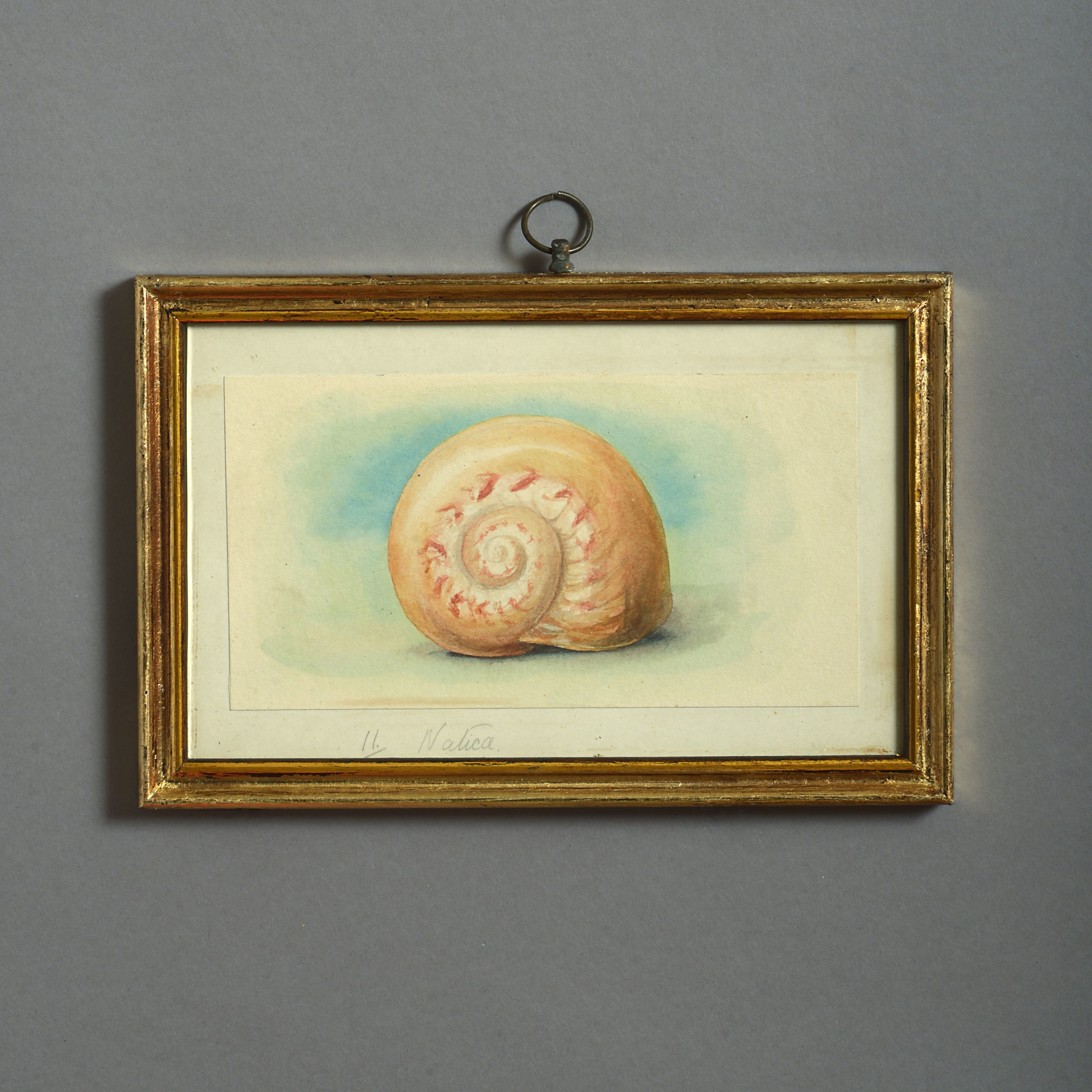 Twenty-four watercolours of British sea shells, laid on paper with pencil descriptions and set within giltwood frames.